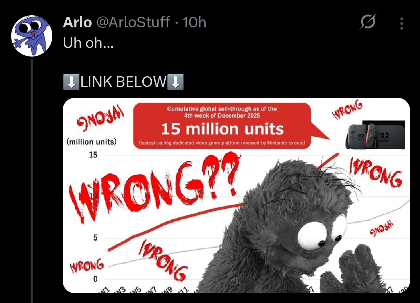 Nintendo shares collapses 11%>Switch 2 sales came to 7.01 million units in the December quarter, compared with the 6.5 million average analysts’ estimate. But Nintendo reported a less-than-expected 23% rise in operating income. Sales leapt more than 80% but also lagged projections.>Nintendo kept its full-year guidance for revenue and operating profit, and stuck to its Switch 2 unit sales forecast of 19 million. That seemed conservative, given the Switch 2 had sold 17.37 million units through December, according to Bloomberg Intelligence analyst Nathan Naidu.>Weak software sales for the Switch 2 propelled the profit miss, Citigroup analyst Tokiya Baba wrote in a report. “We see investors focusing afresh on the risks of Switch 2 profitability deterioration from next FY on,” he added.https://archive.ph/FU1zp