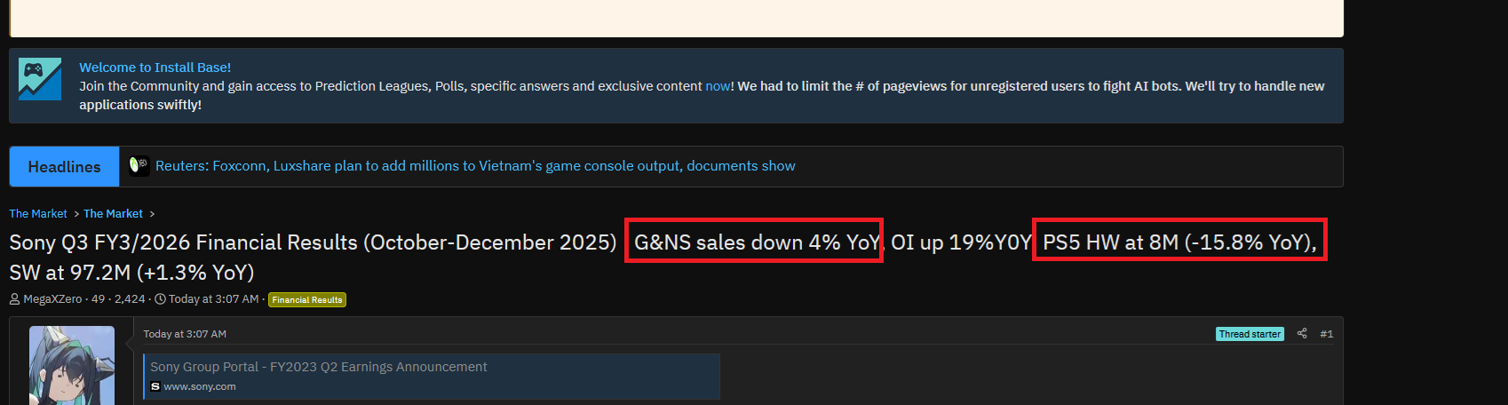 He claims that since you need the console, game and playstation online sub, it gets too expensiveSo it's totally not the games faultIt's not like the game launched on other platforms or anything, lol>Tsujimoto: That's correct. However, we also found that the "PS5 barrier" is unexpectedly large. The console costs about 80,000 yen in Japanese yen. When you factor in the cost of software and monthly subscriptions, it comes to about 100,000 yen at the time of purchase. This is not an amount that can be easily reached, especially for younger generations. This situation is not limited to Japan, but is similar overseas as well.>Our next challenge is to overcome these obstacles and get Monster Hunter Wilds to as many people as possible. Sales will begin in the future, so we are currently formulating a strategy to take advantage of these opportunities to boost sales throughout the year.>The Nintendo Switch 2 was released in June 2025 at a price of 49,980 yen (tax included), and the response was better than we had expected. While prices vary by country, this reaffirmed the high level of cost-consciousness among ordinary consumers.