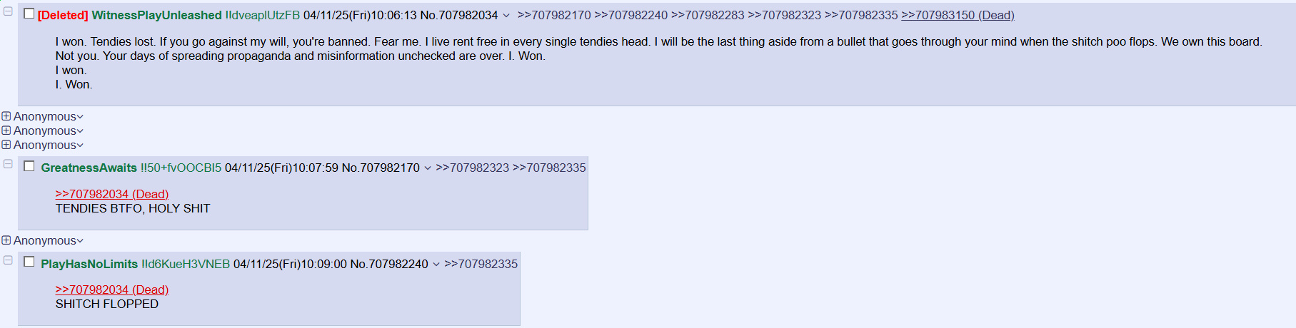 >>732348732>criticism is when you spam TENDIES LOST over and over and make spam threads