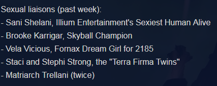 >Shepard, I know you've been reading my files on the Shadow Broker's ship. I just want to make it clear that my relationship with Matriarch Trellani is strictly transactional and the benefits from our partnership have been incredibly lucrative. So what if I have to choke my heat sink between big blueberry tits every once in a while? It's a sacrifice for the sake of human advancement. Can your asari or your quarian get you tapped in to exclusive Thessian markets? Didn't think so. Don't you judge me, Shepard.