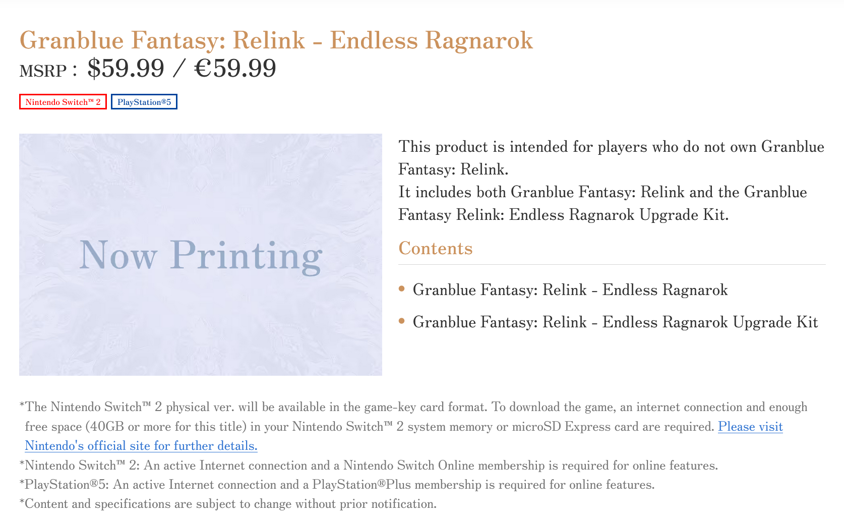 So the website is live.Standard release which include Relink and the DLC is $60, and upgrade DLC is $30.Thank god there is an upgrade.
