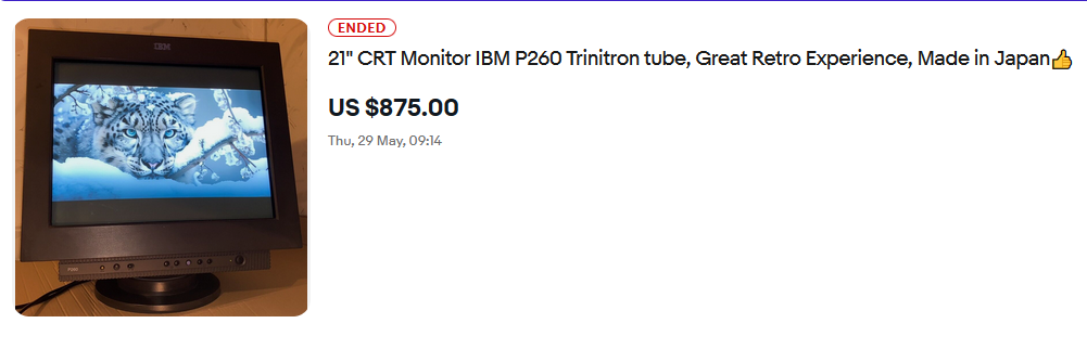 >>732364389I've seen listings in which some guy is selling a normal Trinitron for 20 bux, and then the same TV appears a week later listed by another guy with two zeroes added to the price.