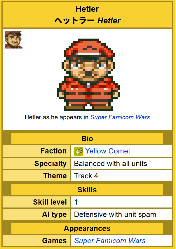 >>732354914Famicom Wars - good for the time, kinda hard to go back. All maps from this game are in the Advance series.Super Famicom Wars - Still good but a bit slower than the advance series and less QOL features and also ALL the maps are in the advance series, also no story mode or anything.Game Boy Wars - 4 games, have never played them but developped by a different company, and it seems they play differently with the ability to attack diagonally.