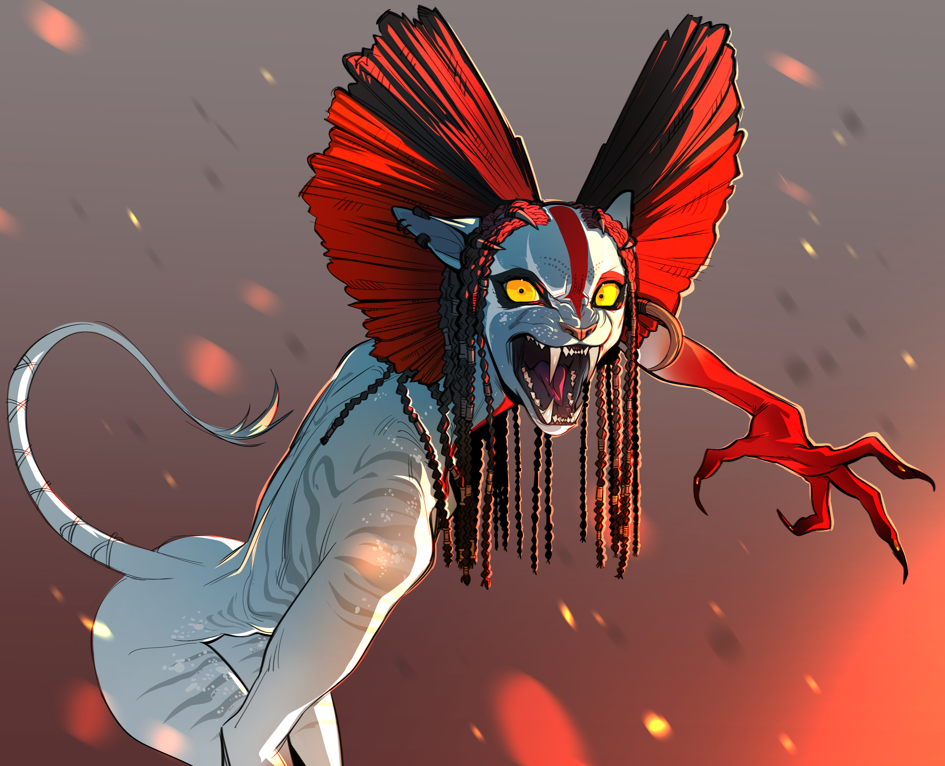 >>732421686I said ape-like:-forward facing eyes to have binocular vision due to moving between tree branches over long distances-highly developed colour vision having to traverse plants of varying shades of of a single colour and knowing what foods are good to eat-high use of the forearms and hands with fingers to manipulate and throw thingsAny creature type can become something like that. Lemurs don't have ape/monkey faces but we know they're a more "primitive" primate due to their snouts still existing, a hold over from our tree climbing rodent ancestors. So something like a cat could become an ape-like creature in design and become a Na'vi with the tail being a holdover of that feline-like ancestor.