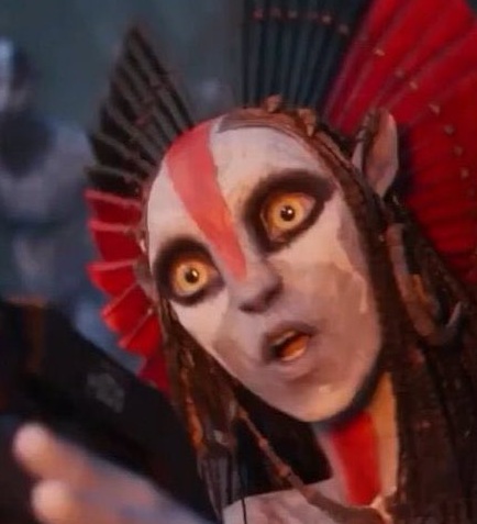 Varang was literally a classic bait and switch. They frontloaded her into the movie, slathered her all over the marketing, made it look like the movie was about racist chud getting his beautiful mid, and then immediately after they form their union she gets dropped HARD, just turns into a henchman and barely speaks again in favor of more gay whale shit and muh water and Jake's mongrel family.