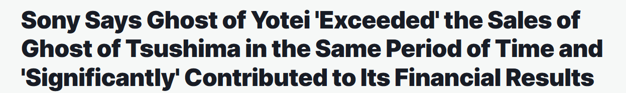 Chuds lost.https://www.ign.com/articles/sony-says-ghost-of-yotei-exceeded-the-sales-of-ghost-of-tsushima-in-the-same-period-of-time-and-significantly-contributed-to-its-financial-results
