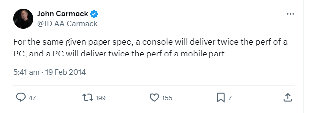 more or less. on pc you have to bruteforce with more power. while consoles are custom made and optimized for one purpose