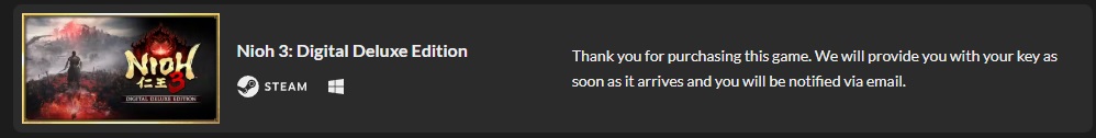 >Thank you for purchasing this game. We will provide you with your key as soon as it arrives and you will be notified via email.