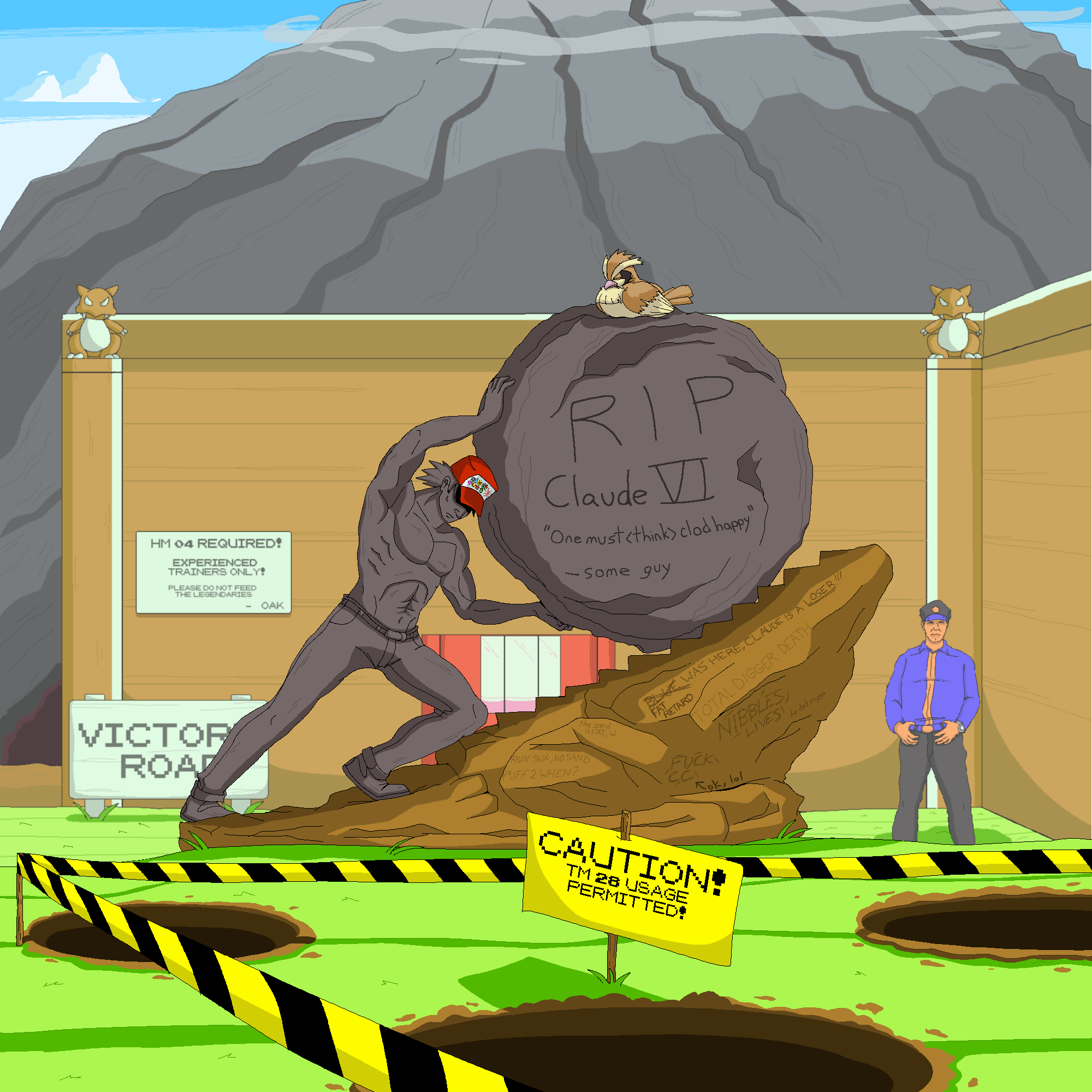 >>732412493I was thinking of either further defacing the current monument if VII gets stuck in Victory Road again or if he manages to make it past the first fucking floor then I'll just do another one inside the damn cave