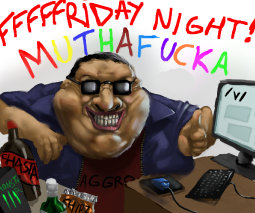 FRIDAY MORNING/NIGHT MOTHAFUCKAWATCHA>PLAYAN>WATCHAN>LISTENAN>READAN>EATAN>DRINKAN>FAPPAN>FEELAN