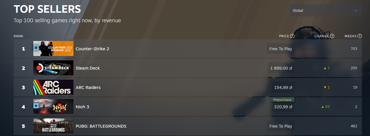 >>732464113Steam top sellers list has never been a real "top sellers" metric. Developers and publishers pay Valve to feature their game in the top 10. It doesn't reflect sales or playercount at all.