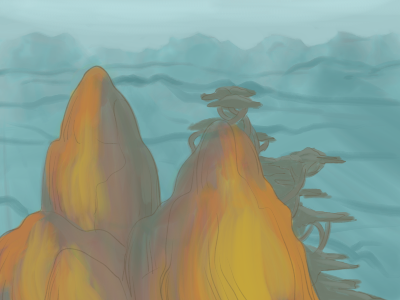 >>732484680Trying to mimic the painted background style of old anime for my game. I think I'm close enough, don't know how to make this more authentic without making it too hard to draw.