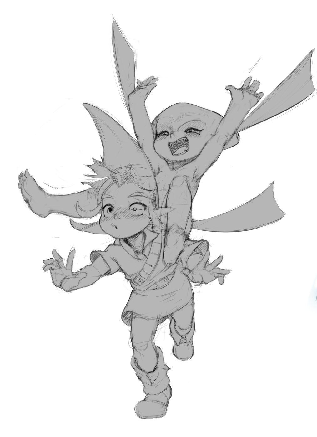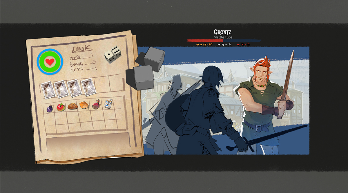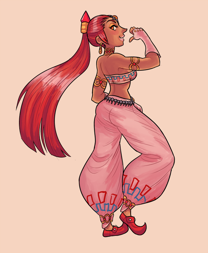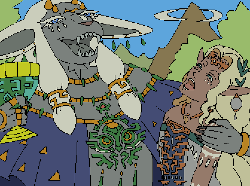 Took a bit of a break of the vn. Came back this week and reworked the combat resolution/ui into something snappier, closer to fanzine ttrpg stuff, d6, etc. Lifted a lot from Dragon's Crown Demon Island DLC too. So scope is a fair bit lessened from the original big rpg thing I had going on, but I feel like it's tighter and service the idea of the vn better. + smaller/fewer assets means i won't suck up too much time to add content.I also did some Midna exploration, trying to tie her more into the zonai visuals (with the whole brass and jade thing) but it wasn't that great. She's show up in the midpoint of the story tho so it's no pressing matter.I still haven't got around finishing that Ruto/Mipha Onsen piece, sorry