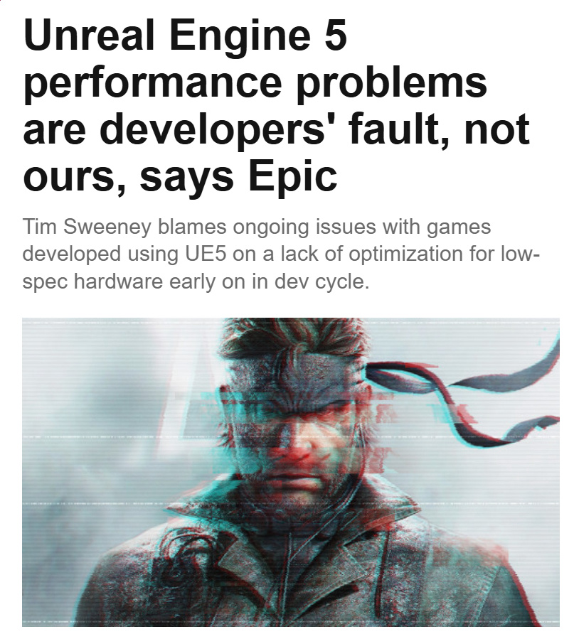 So Epic are admitting they are shit developers since Fortnite started running like shit when they moved over to Unreal 5