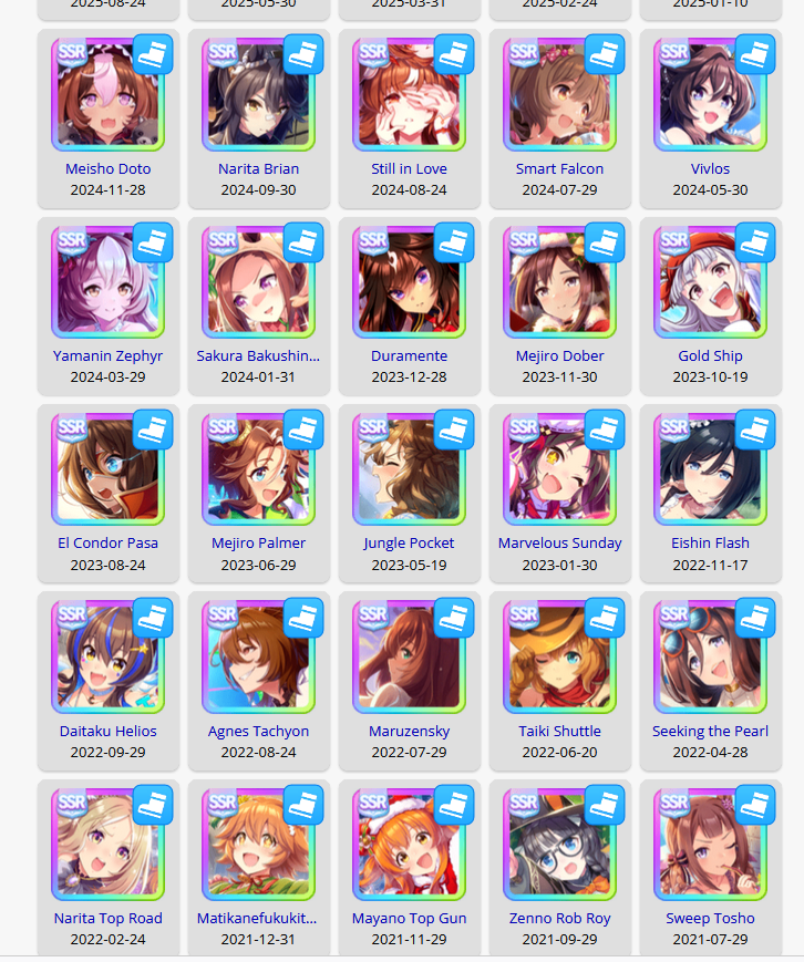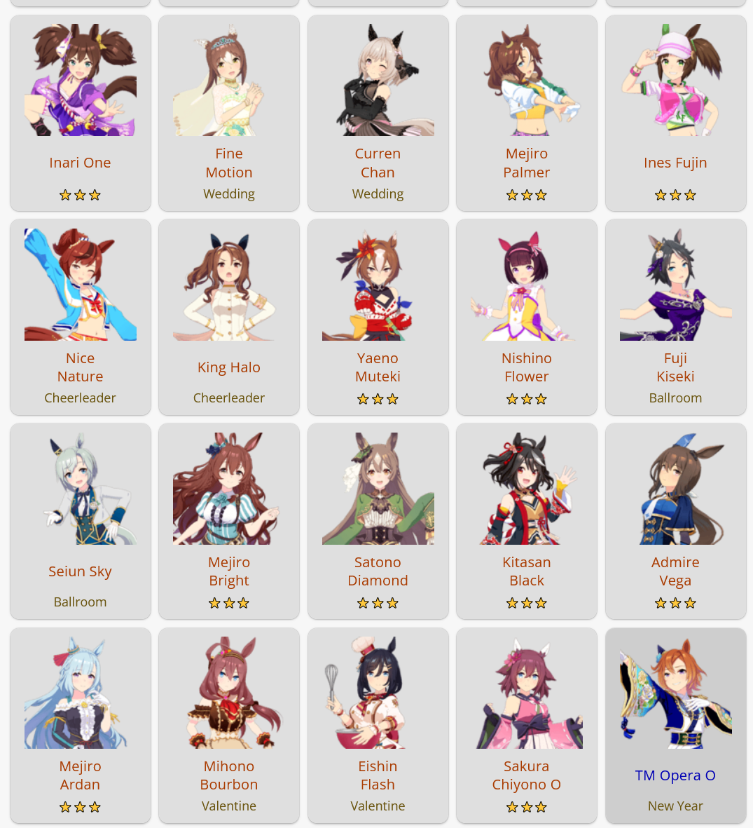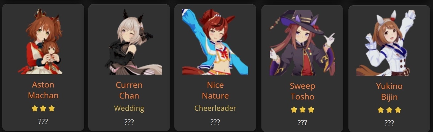 I'm getting both Valentine alts, Kitasan, Cheerleader Nature and Wedding Curren.