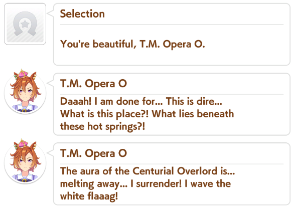 Upon thinking about it, its a bit odd how Rudolf hasn't appeared in Opera's career, would be fun seeing Overlord go against the Emperor, although I suppose it would go against the whole "Golden Gen passing the torch to the next one" thing she had going in career, but then again, Overlord dethroning the Emperor would also be fun and somewhat fit the theme