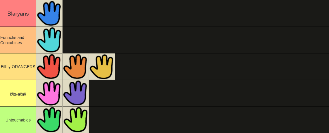 >>732719992give us your full race tier list with explanations for each color