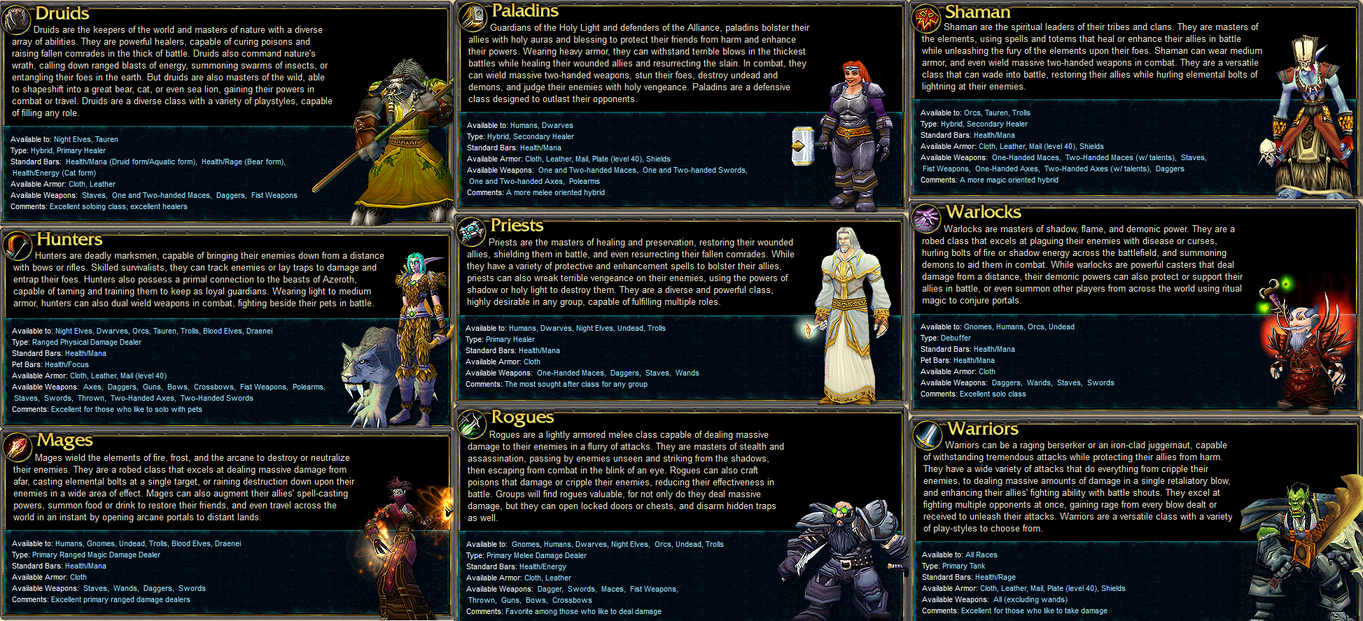 >>732678631Older MMOs apparently had a more diverse system of classes as opposed to the trinity that WoW and others cemented. Marketers were trying to appeal to that type of gaymer.Also locks are more of a 'debuff' sense with how they apply DoTs and shit instead of direct damage like a mage.>>732681128Came for the porn Now I hate the jews
