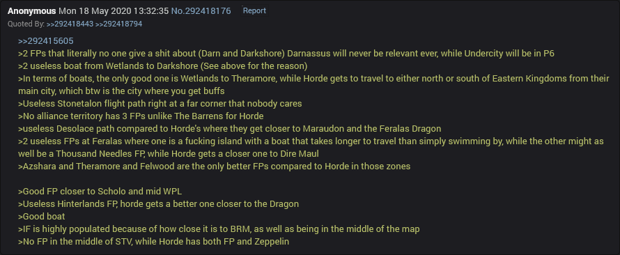 >>732679715Reminder that every zone that has both horde and alliance content is heavily horde favored.Horde is literally the easy mode faction.