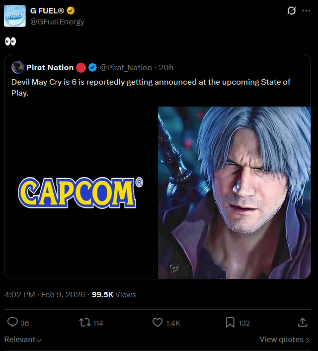 I mean I guess its the rule of 3 Capcom likes to follow. Pragmata, MHS3 and RE9 are coming out. They're going to up the advertising on those the close we get and show off the next three games they're working on. DMC should probably be in there.Think what I'm not looking forward to is Dante is obviously going to be reinvented, which I've come to accept, but I'm not looking forward to the people that more or less pushed Reuben out being annoyingly giddy. I also wonder if Capcom understands why Dante was considered their poster boy for so long.