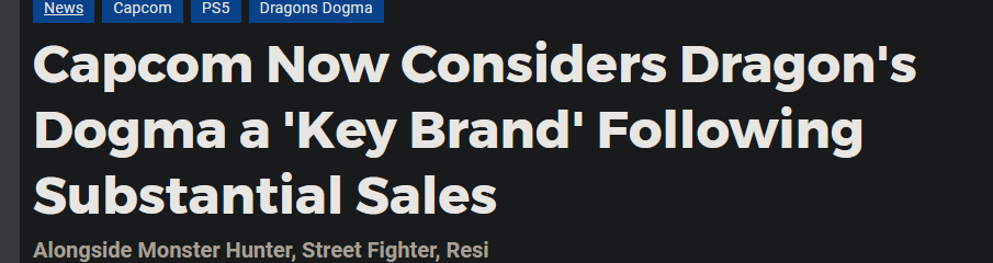 >>732670758The lifetime sales of DD1 is 9.4 million units. It's one of the best selling Capcom games ever. Likewise DD2 has sold 4.1 million units which is far from what Capcom was expecting.By all accounts DD overperformed and was the last big new Capcom IP, but Capcom refused to support it in any way whatsoever.