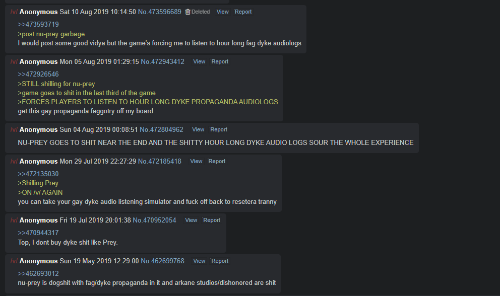 >>732691509You can check the archive, type ''prey dyke'', everyone hated hearing those two hideous ogres cry about their relationship