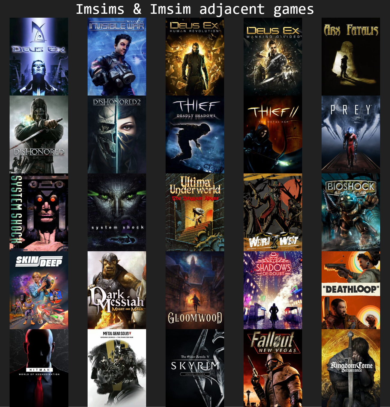 >imsim>deadyeah no shit - people can't even tell you what defines the genre and even games that do get labelled with it there are only a few in number and even fewer are good games. It is like asking why shmups died as AAA experience.