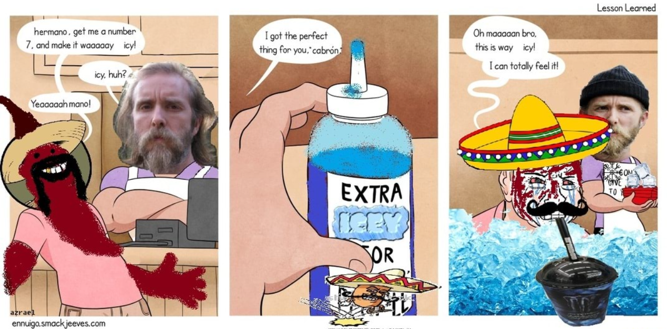 >>732669996>ice waterwhere the fuck are u getting "ice water" from? its a fish drinking water, not ice water, just plain water with no information about its temperature, there is no ice in it.And who the fuck is getting up and trying to get a cold cup of water in the middle of night, if you get thirsty at night you keep a cup next to your bed that you filled up before bed, that shit isn't going to be cold when u wake up in the middle of the night.Is this AI? It has to be, nothing else could hallucinate so much bullshit out of nowhere.