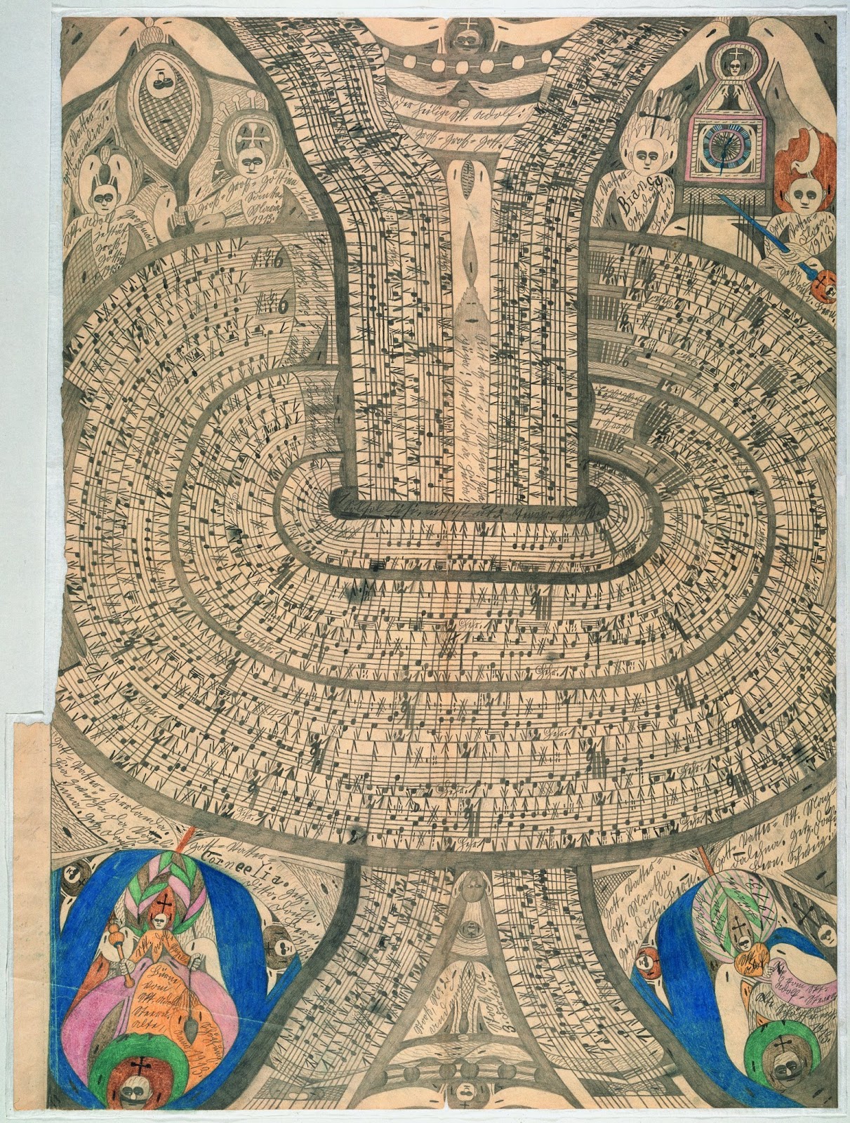 >>732674474It's interesting to me how schizo / "outsider art" all kind of looks kind of the same. Like there is literally a schizo aesthetic, and they all independently arrive at it. Or do they.... ?