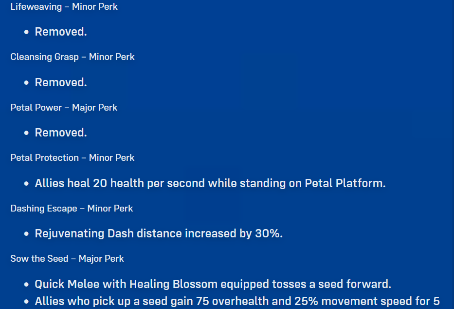 >>732772801>>Lifeweaver buffed into broken tierlolas somebody who's played a ton of him, this will help but it's not anything crazy, they just got rid of his dogshit useless perks and replaced them with good onesthe seed is really good, and I'll probably be taking dash, but it depends on teammates; if they can actually use the platform then I'll go with thatunfortunate that I'll have to give up the giga needler for extra healing but LW needs it