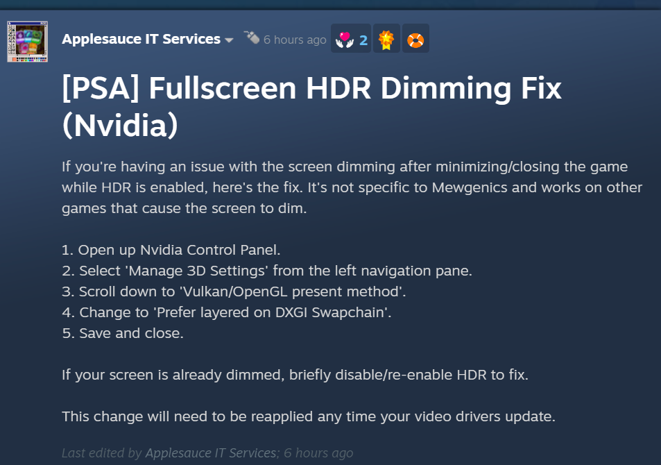 >>732725652here you go bwoand any of you other kids who are having issues with HDR and fullscreen on Nvidia cards
