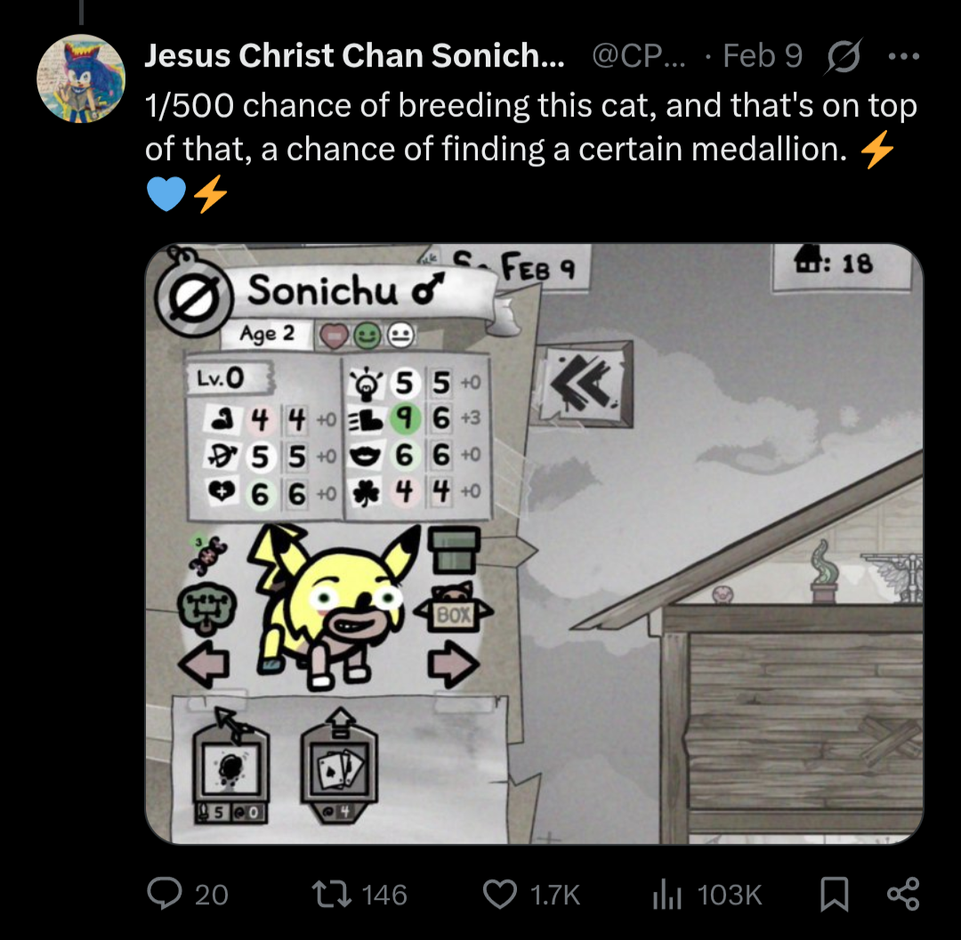 chris chan is giving away copies of mewgenics lmfaobased edmund going all in on the autist https://x.com/CPU_CWCSonichu/status/2021395583467127064?s=20