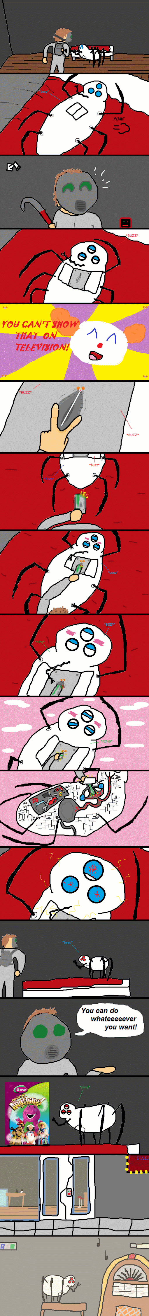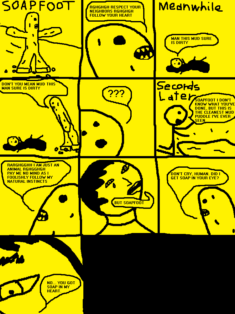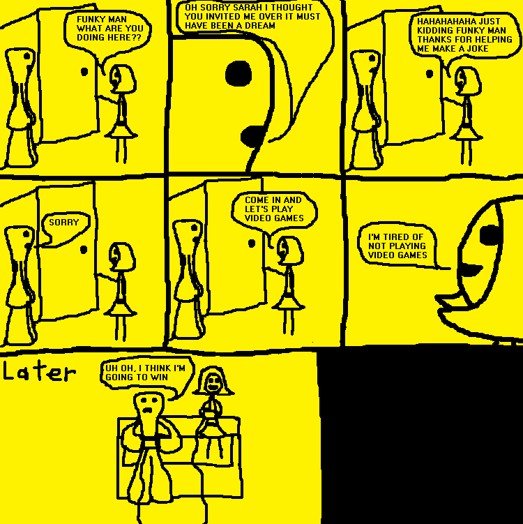 >>732749076Flip the exclamation mark upside down. It was used because the mods wouldn't conceivably ban the word lol. It quickly became a shitpost thread which lead to the shittiest of posts, game comics. Some of the images you might save from here are embedded. Have fun with that.Or maybe I'm just a really convincing liar.