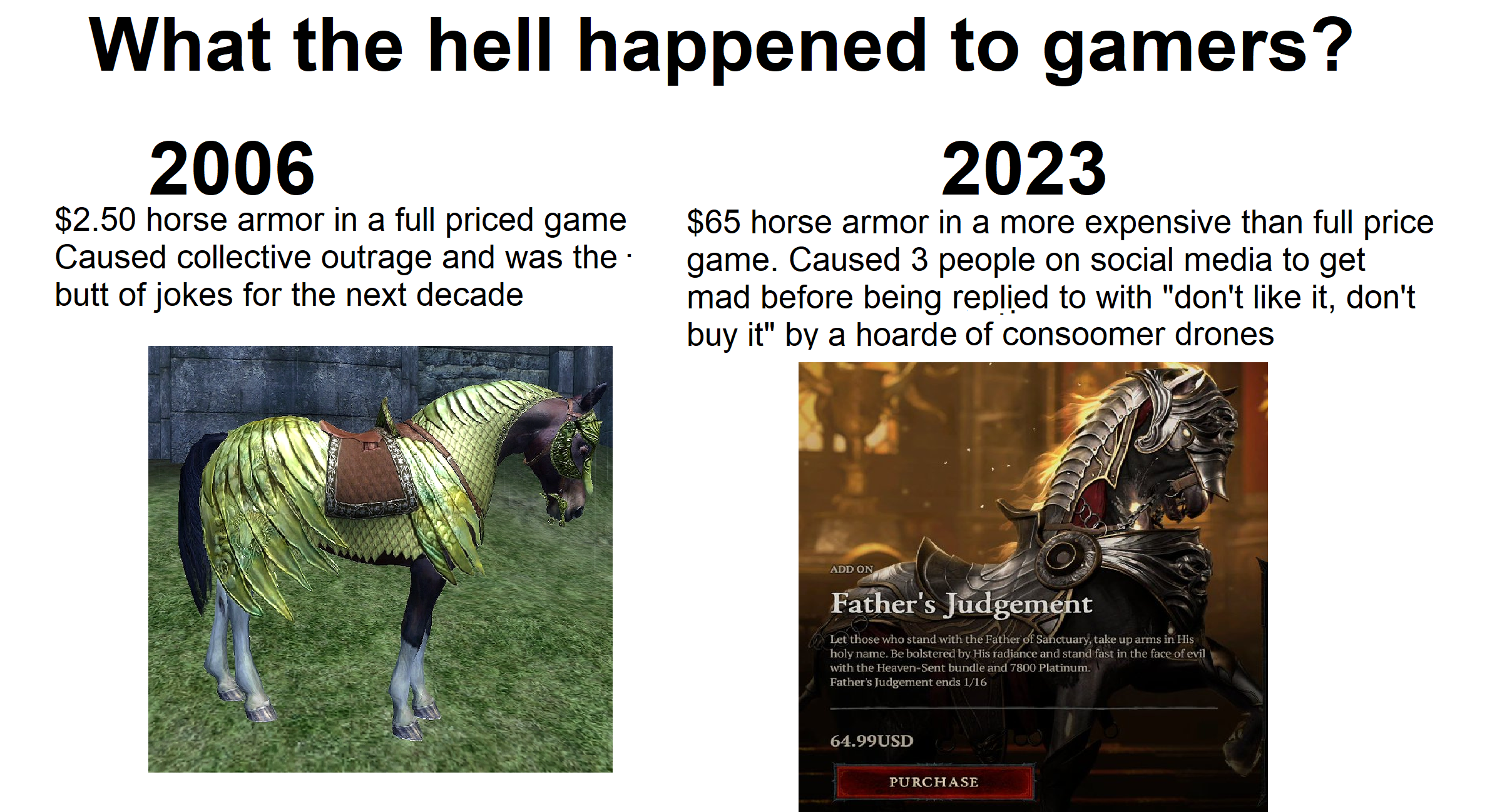 >spend three consecutive decades complaining about how exclusives are anti-consumer and everything should also be on PC>everything is now also on PC>cue three consecutive decades complaining about how there's no reason to buy a console when you have a PCYou can't win.