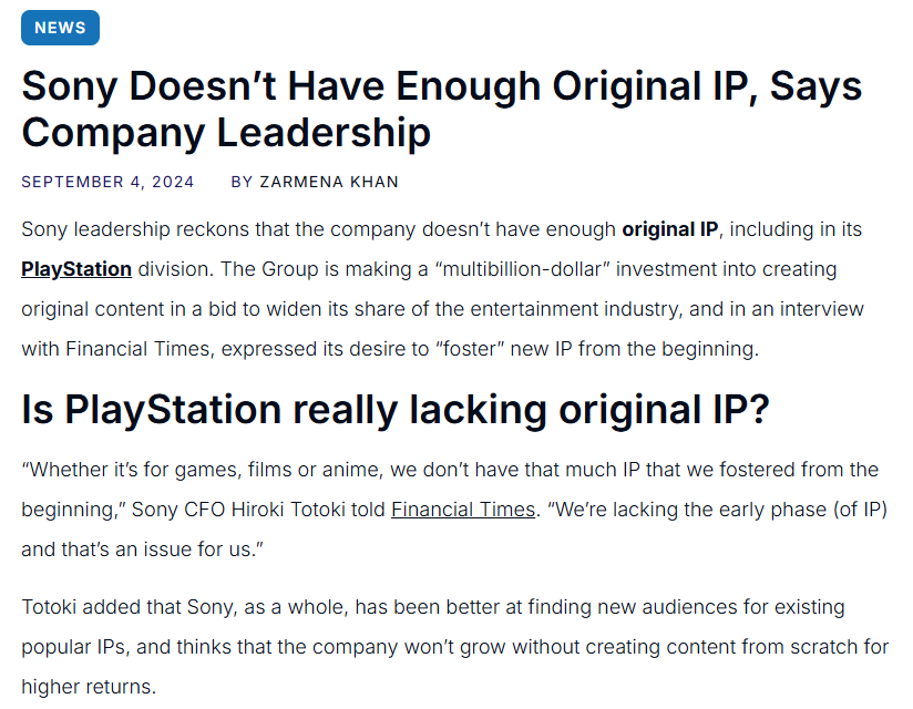 Sony decided to kill their own native Japanese video game dev industry which had extremely high game output in favor of Western game devs who take 10-15 years to make one soulless AAA game.