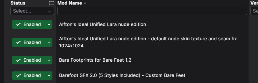 Goon mods are gay. The best mods are the ones that add fitting nudity or in-use sexification, like the ones in The Witcher 3 or Cyberpunk, which only remove underwear for things like strippers, or prostitutes during sex scenes, because only insecure bitches fuck in a bra or strip in a bikini. That's where nudity fits. I'd rather see SFM of Lara getting fucked than running around a dangerous tomb with her titties out, her default outfit is sexy enough.