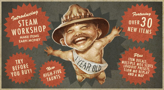 >>732758714>>732758859Mannconomy was the beginning, but the workshop was the actual point of no return, because that's when Valve stopped giving a fuck and just filled updates with user-made slop