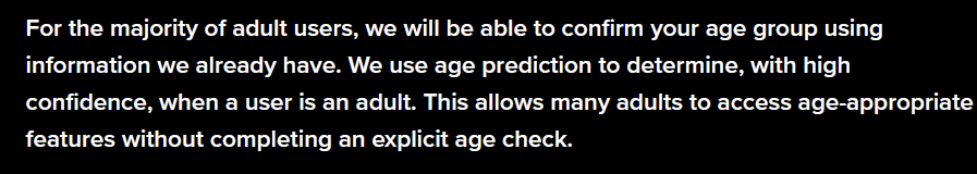 >>732761942Well now you'll have the option to actually prevent children from accessing your server by requiring them to provide an ID if you so choose, but the point is that this hypothetical server were snot-nosed brats were being filtered by a "Are you 18 or over? Yes/No" check is a laughable notion.