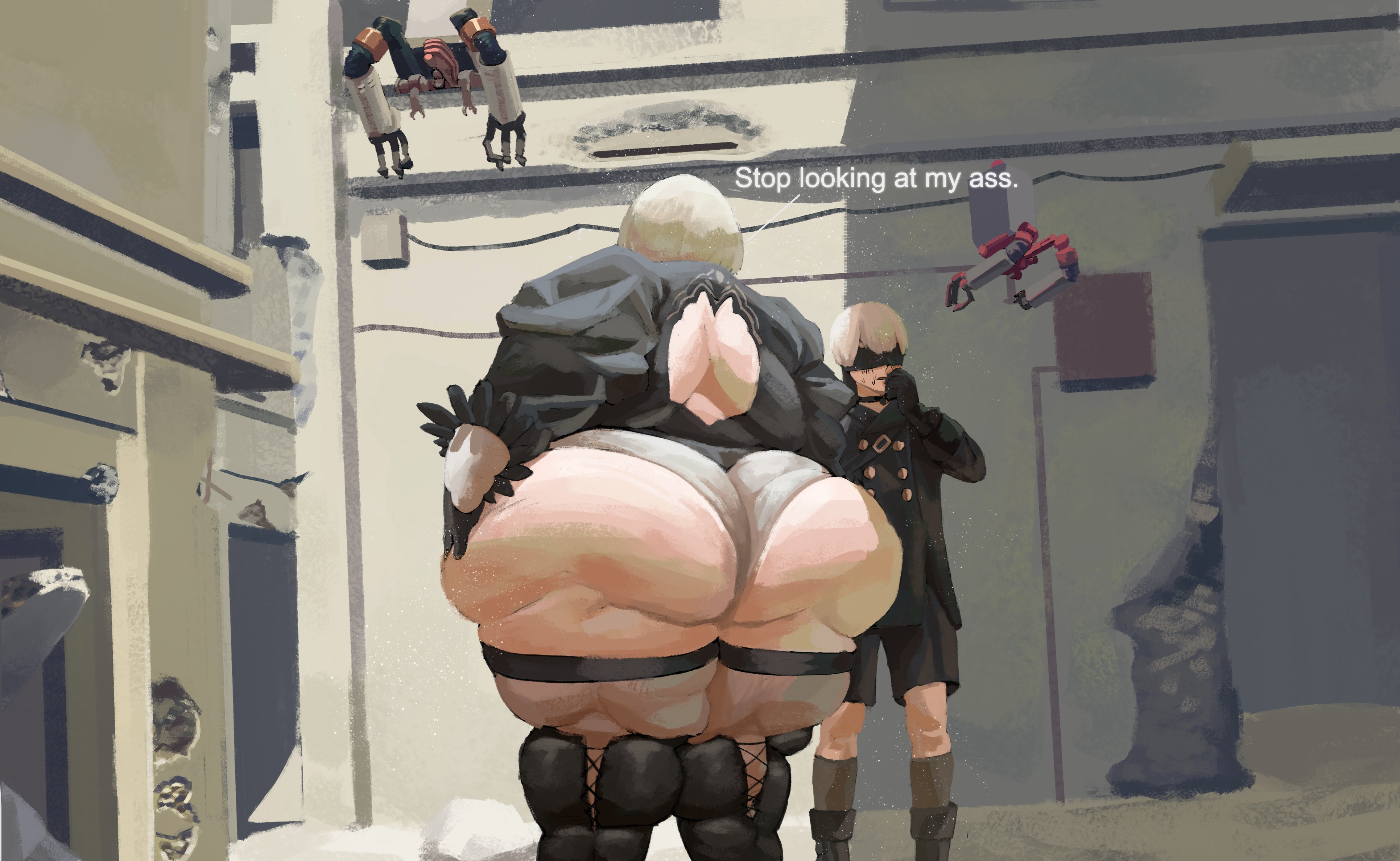 >In-game 2B has a slim, fit and narrow ass>90% of fanart depics her with a fat and gigantic assWhat gives?
