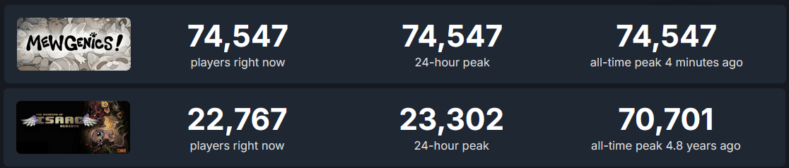 Yeah man Binding of Isaac: Rebirth was flavor of the month (for 10 years)