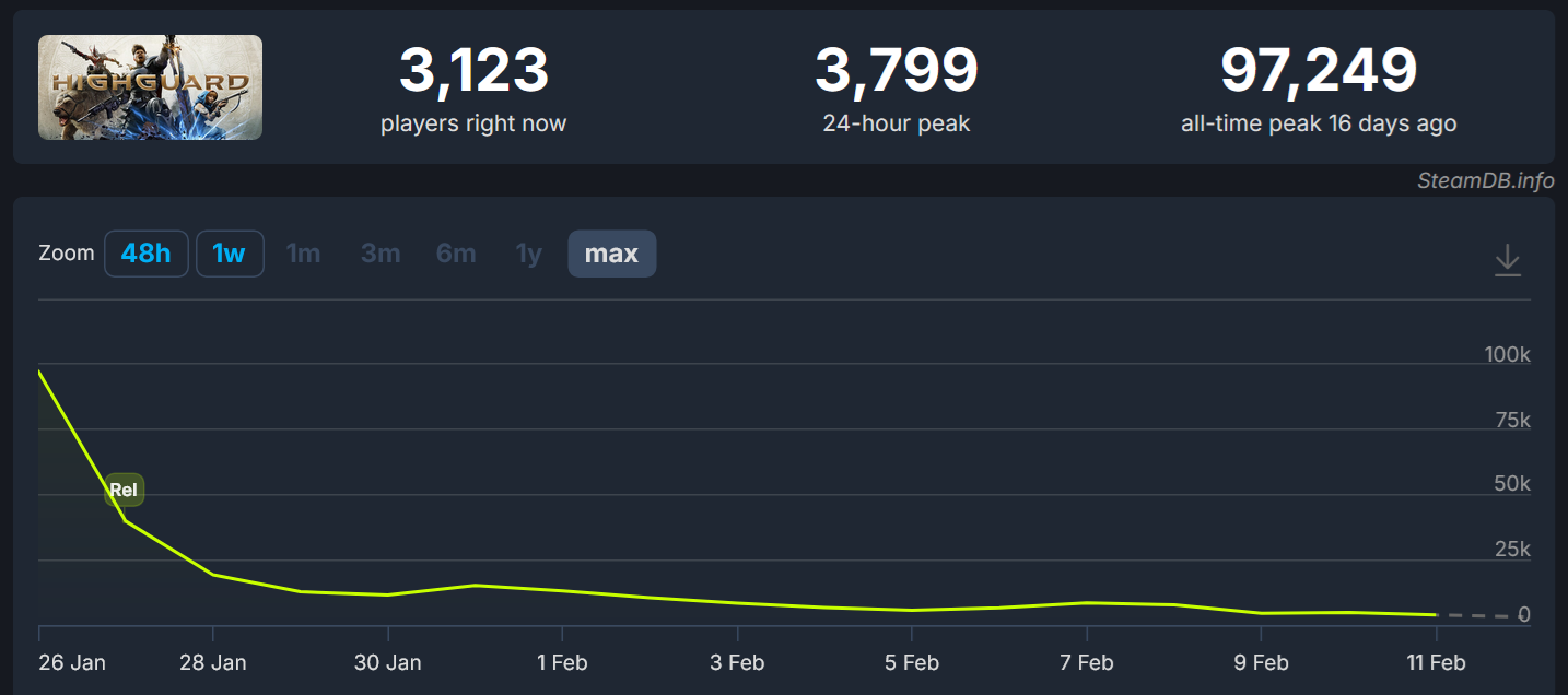 >>732806432There are many problems with Highguard, but ultimately people gave it a chance and didn't like playing it, which is much harder to judge around. Granted someone could say "we need to sell skins, so you morons need to have attractive skins to sell" which is absolutely true, but it probably would have been a moot point in this case since that would have been a monetization issue in a game with abysmal player retention.