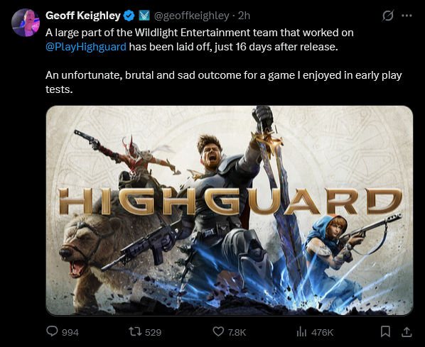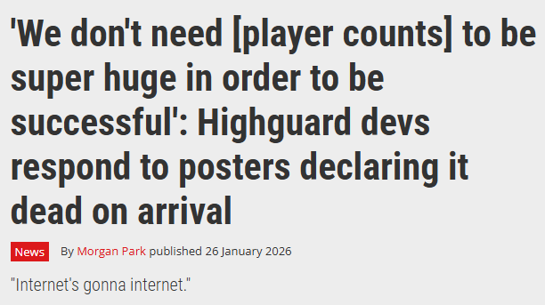 >>732815584>We don't need fries to be extra large in your order: Ex-Highguard devs respond to their new customers.