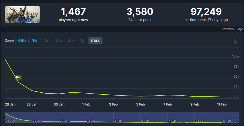 >>732806432There are many problems with Highguard, but ultimately people gave it a chance and didn't like playing it, which is much harder to judge around. Granted someone could say "we need to sell skins, so you morons need to have attractive skins to sell" which is absolutely true, but it probably would have been a moot point in this case since that would have been a monetization issue in a game with abysmal player retention.