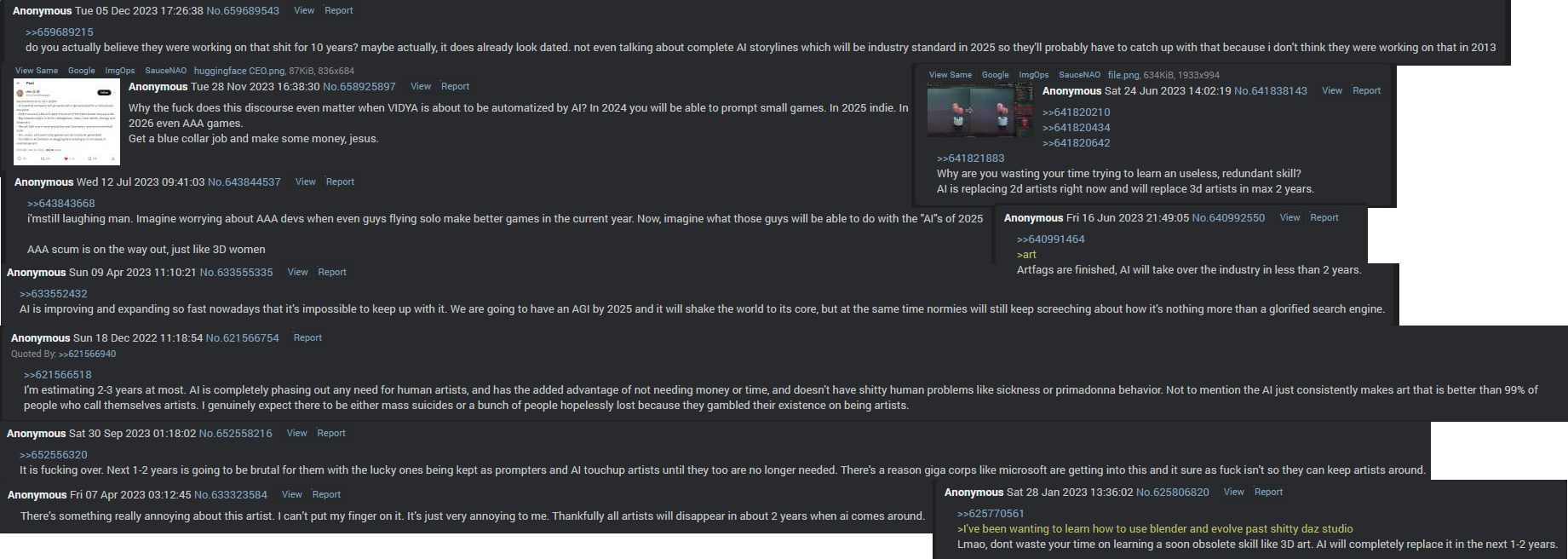 >>732819954I browse Skyrim modding discords where porn artists post and they all straight up admit to doing it.>>732820002>AI can drive cars>this retard still thinks AI is just for pornYou are literally stuck in 2020.