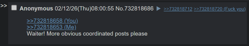 >>732818658>>732818653Waiter! More obvious coordinated posts please