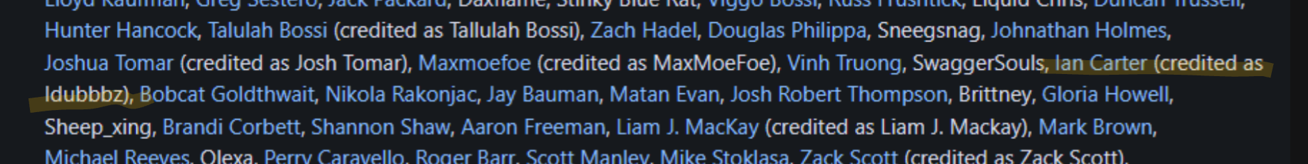 >>732831690>Zack Scott credited as Zack Scott???>Ian Carterhis legal name is Ian Jomha>Will Stamperhonestly thought he killed himself already>no Bisnapliterally THE biggest binding of isaac streamer