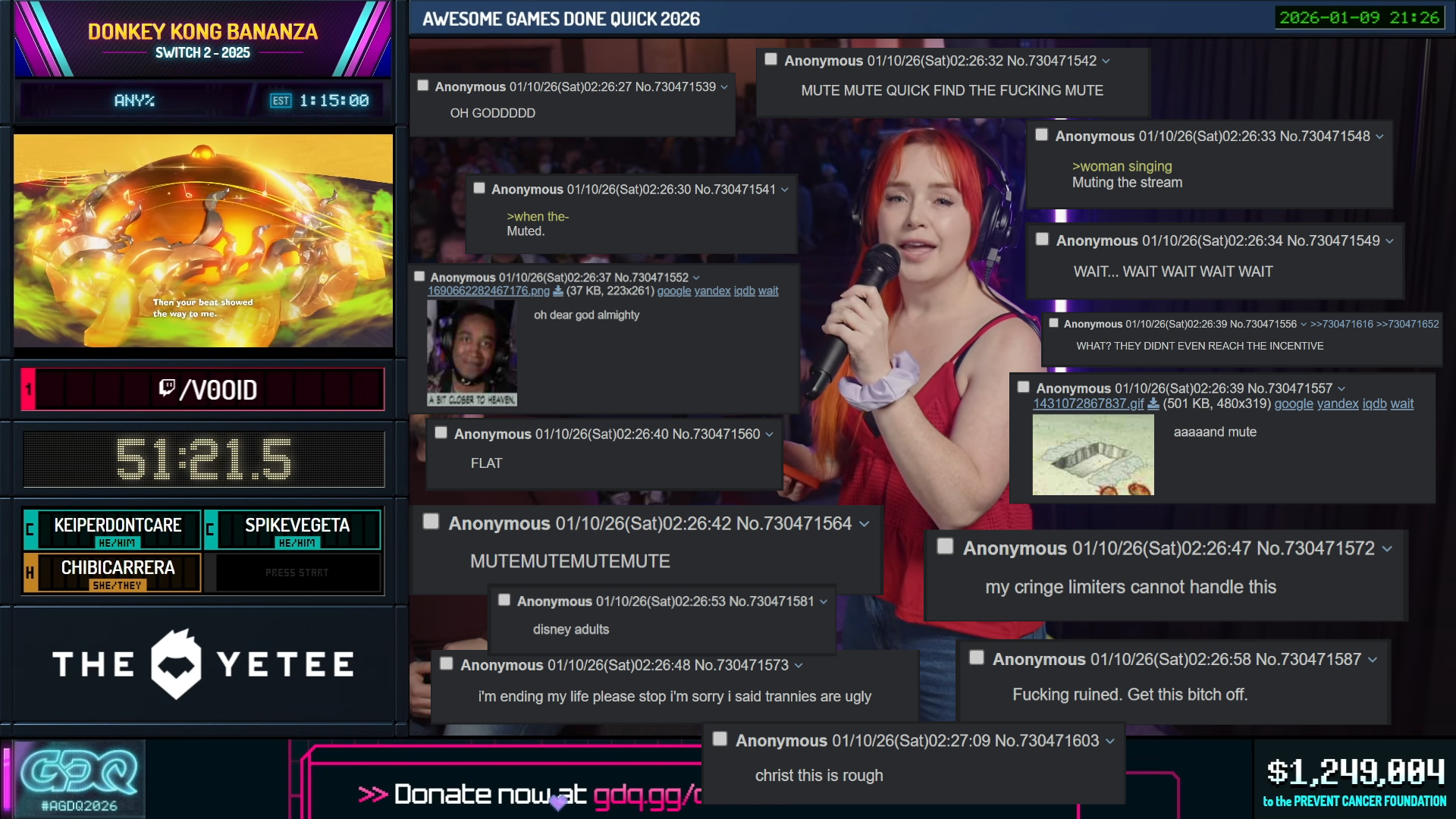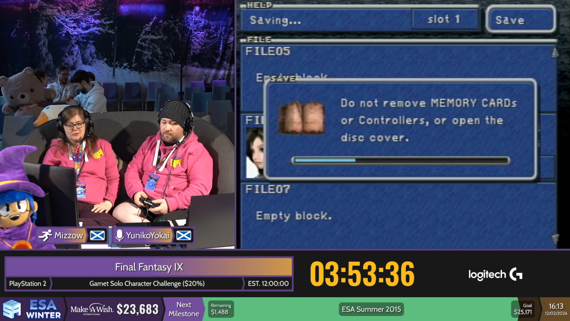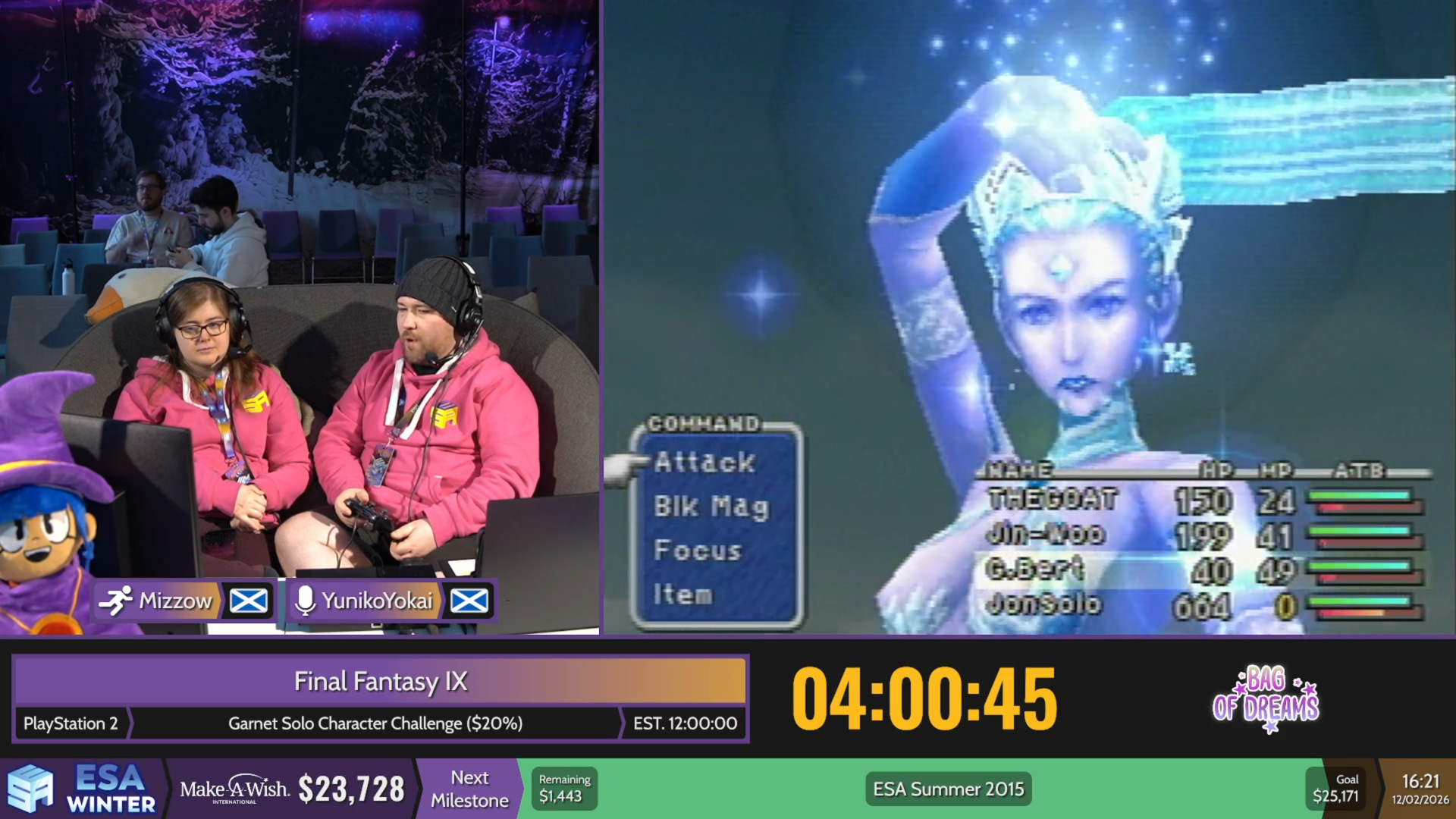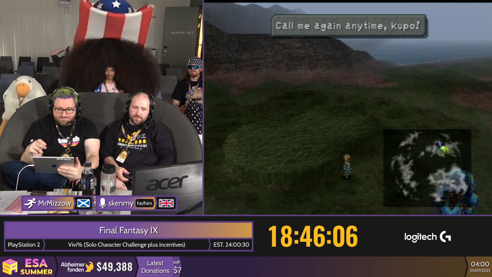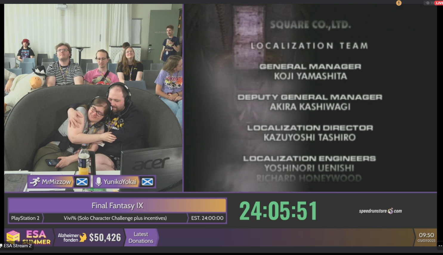 >Stream 1 Now: The Legend of Zelda: The Minish Cap Next: Sound Voltex: Exceed Gear Later: Mario Kart World >Stream 2 Today and tomorrow: FFIX ($20%) - Garnet only run https://www.twitch.tv/esamarathon https://www.twitch.tv/esamarathon2 https://www.youtube.com/@ESAMarathon/live https://esamarathon.com/schedule/ Previous: >>732838449