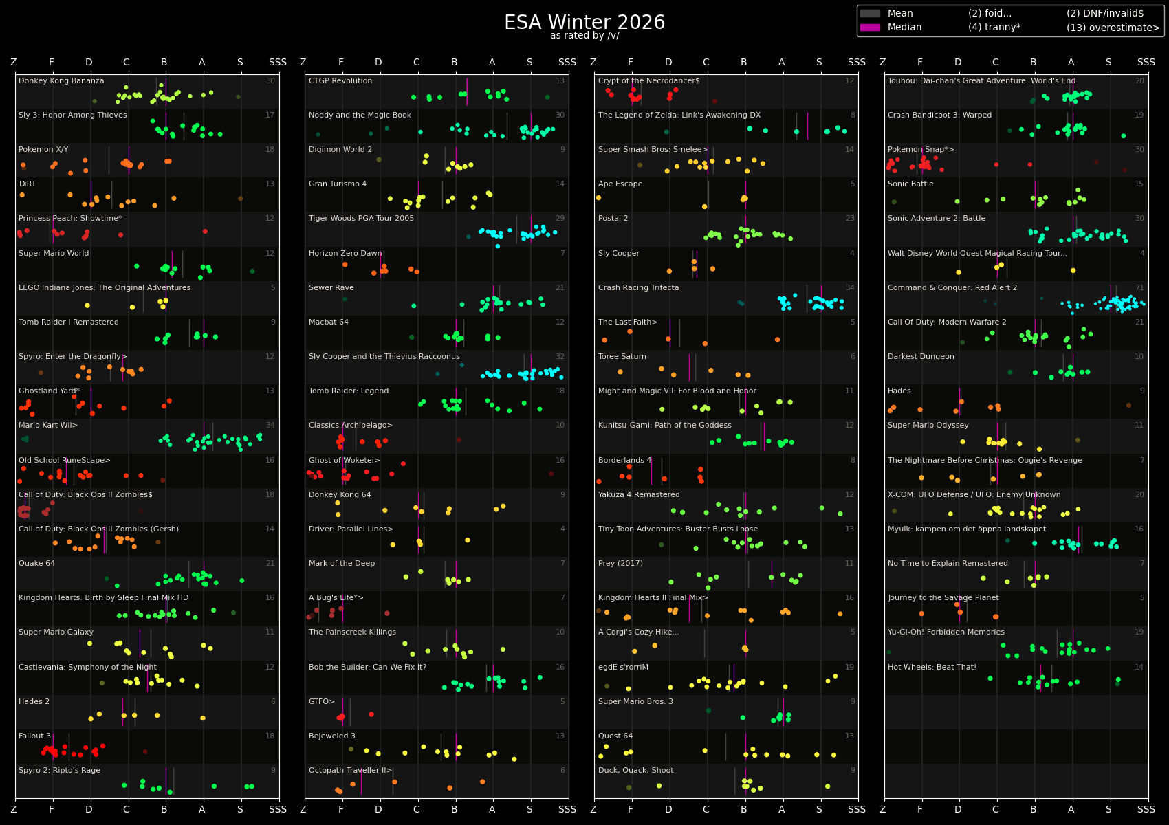 >>732839086>SSS: 0>S: 0>A: 0>B: 0>C: 0>D: 0>F: 2>Z: 83never forget the twin towers of speedrunning