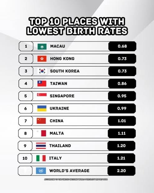 >>732917087>>732917178>Hong Kong Fertility Rate Year 2001: 0.96>China Fertility Rate Year 2001: 1.56>South Korea Fertility Rate Year 2001: 1.31>Italy Fertility Rate Year 2001: 1.25>UK Fertility Rate Year 2001: 1.63>Japan Fertility Rate Year 2001: 1.33But japan was supposed to be uniquely bad?