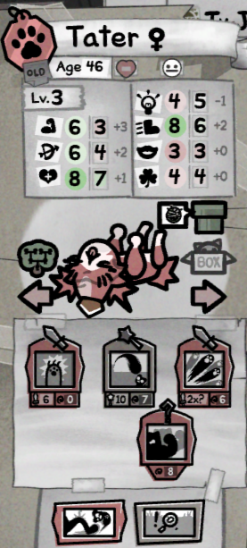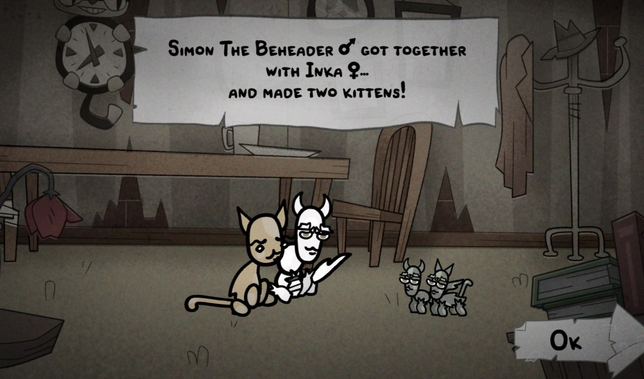 From what I've gathered so far, this is how breeding works:There's only 3 home stats that effect breeding: comfort, stimulation, and mutation. You're gonna want to segregate your cats into at least 2 groups: group 1 is your general pool/farming cats: these are cats you don't care about like strays or cats with defects or bad stats. They stay in a room with comfort as low as possible with negative comfort furniture, cat shit everywhere (lowers comfort), and overcrowded India train tier conditions because you want these cats to injure, grow to age 5, or kill themselves as fast as possible so you can farm unlocks. Those who survive can go into a group 2: these are cats you run through the sewers easy path only so they become veterans for more unlocks. Finally you have group 3, the breeding pen: with at least 5-10 comfort the cats will stop fighting and only breed. I kept weeding out cats with low stats/bad mutations/bad passives, and eventually I'm at the point where I only keep kittens with 0 'red' stats, only white and preferably green stats, and good mutations. I assume group 4 will be specialized breeding rooms in order to pass down specific traits and passives, but I'm not there yet because it takes forever to unlock house expansions. The downside is that like just like darkest dungeon, this game requires a shit load of grind in order to progress in meaningful ways, which is fucked. I almost just tossed this piece of shit because he has red stats, only to discover that he's a primordial dwarf. Probably gonna become one of my strongest archers ever.